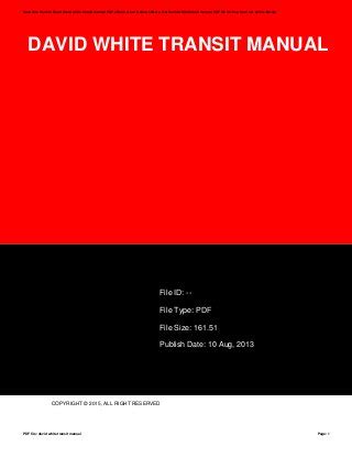 Download DAVID WHITE TRANSIT MANUAL Epub